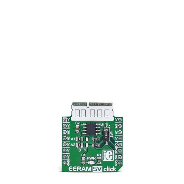 Add memory to your project with EERAM 5V click. It carries the 47C16 EERAM, a 16Kbit SRAM with EEPROM Backup from Microchip. The click is designed to run on a 5V power supply. It communicates with the target microcontroller over I2C interface, with additional functionality provided by the INT pin on the mikroBUS™ line.