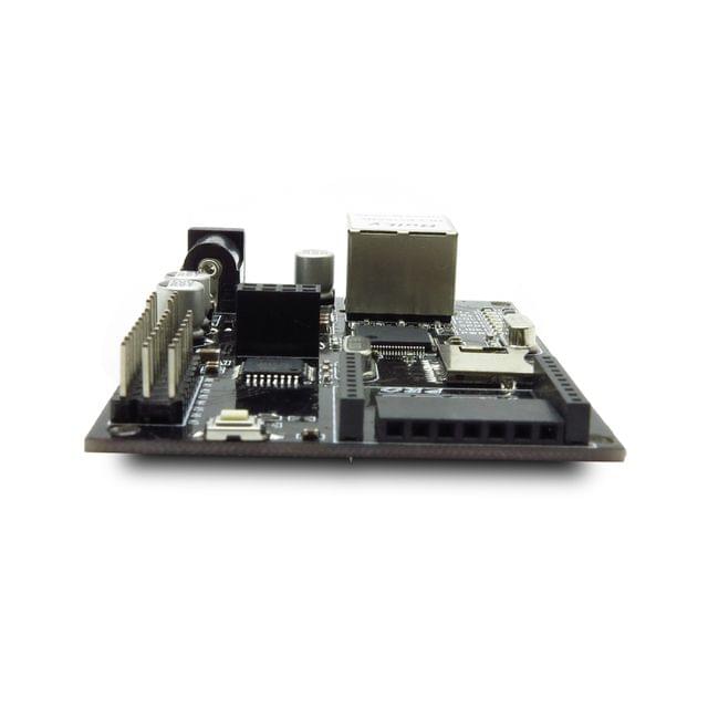 Iboard can be used as an Ethernet, wireless communication project development platform. Iboard support POE (power on Ethernet) power supply, and Micro SD for mass storage. There are some 3pin electronic brick / sensor brick interface breakout on board, it offers an easy way for a quick prototyping. You can setup a web server through which you may communicate with a remote Arduino using XBee radios, bluetooth or APC modules. This information can be posted to a web site, or to Twitter.
